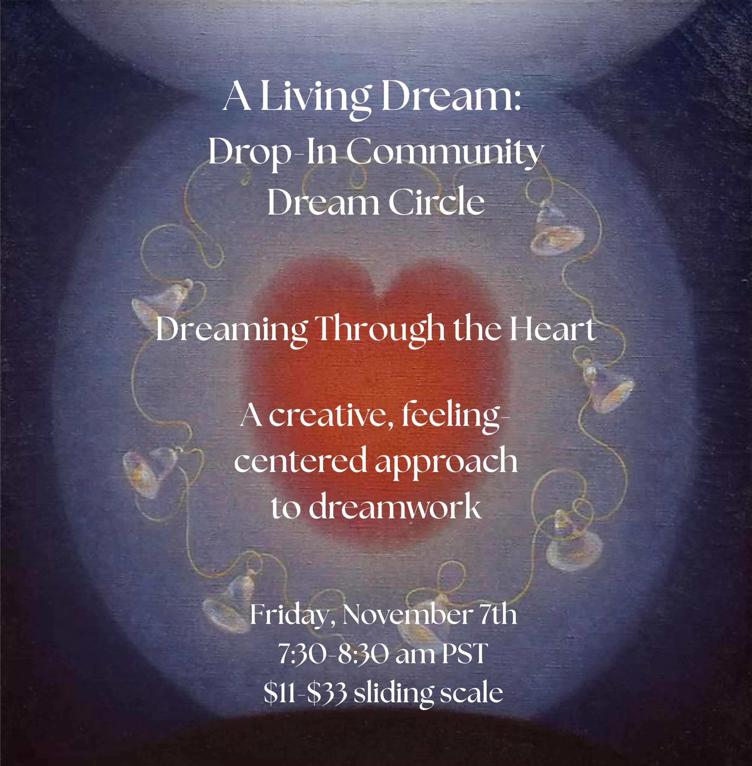 Dream circles will be held on the first Friday of every month, from 7:30–8:30 a.m. PST on Zoom. Contribution is $11–$33 (choose what you pay), and if cost feels like a barrier, please reach out—we want this space to remain open and accessible.